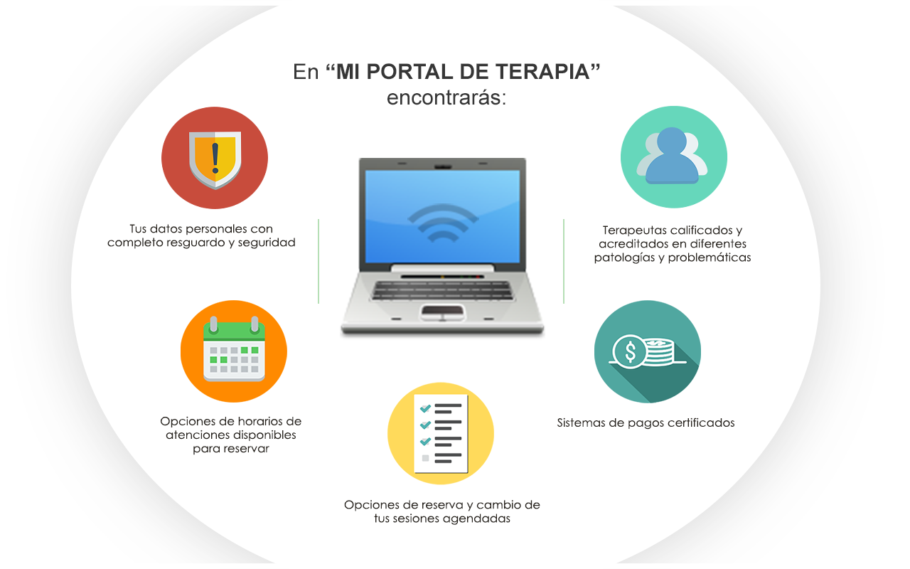Con "Mi Portal de Terapia" puedes acceder a tus Terapias Psicológicas desde cualquier lugar del mundo a un solo click de distancia para estar con nuestros terapeutas. Nuestra plataforma posee altos estándares de seguridad resguardando la información y privacidad.